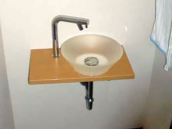 | 手洗い場は、ガラス製のオシャレなものに交換しました。 |