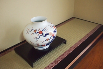| 土壁は湿度に強い防カビ塗料で塗り替えました。いつでもお客様を歓迎できる玄関になったと喜んでいただけました。 | 和室の襖も全て張り替えました。豊富なデザインの中から選ばれた襖紙は奥様のセンスが光っています。 |