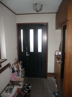 | 以前は、キッチンにつながる部屋は和室でした。 | キッチンは壁付けのキッチンでした。 | 以前の玄関の様子。 |