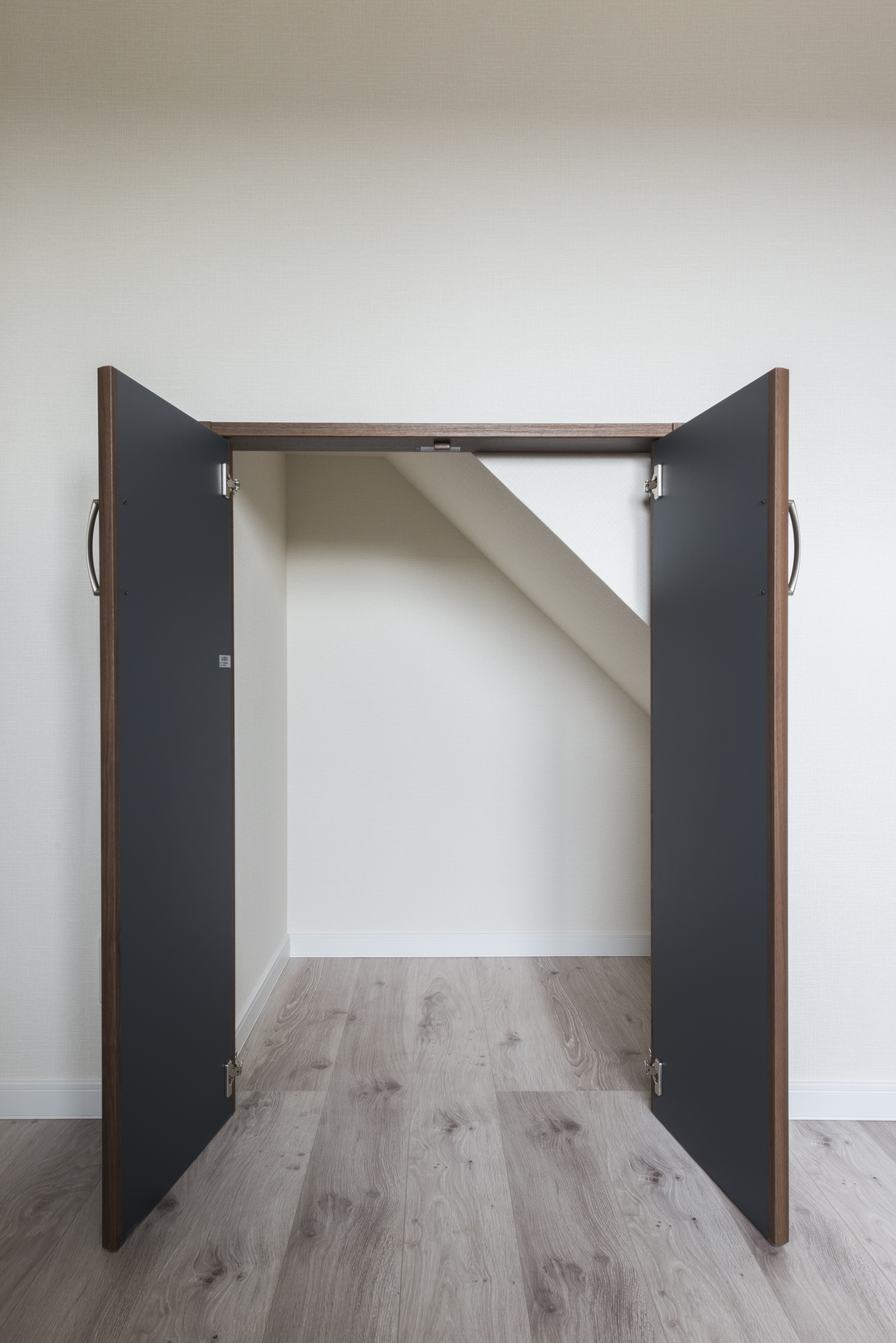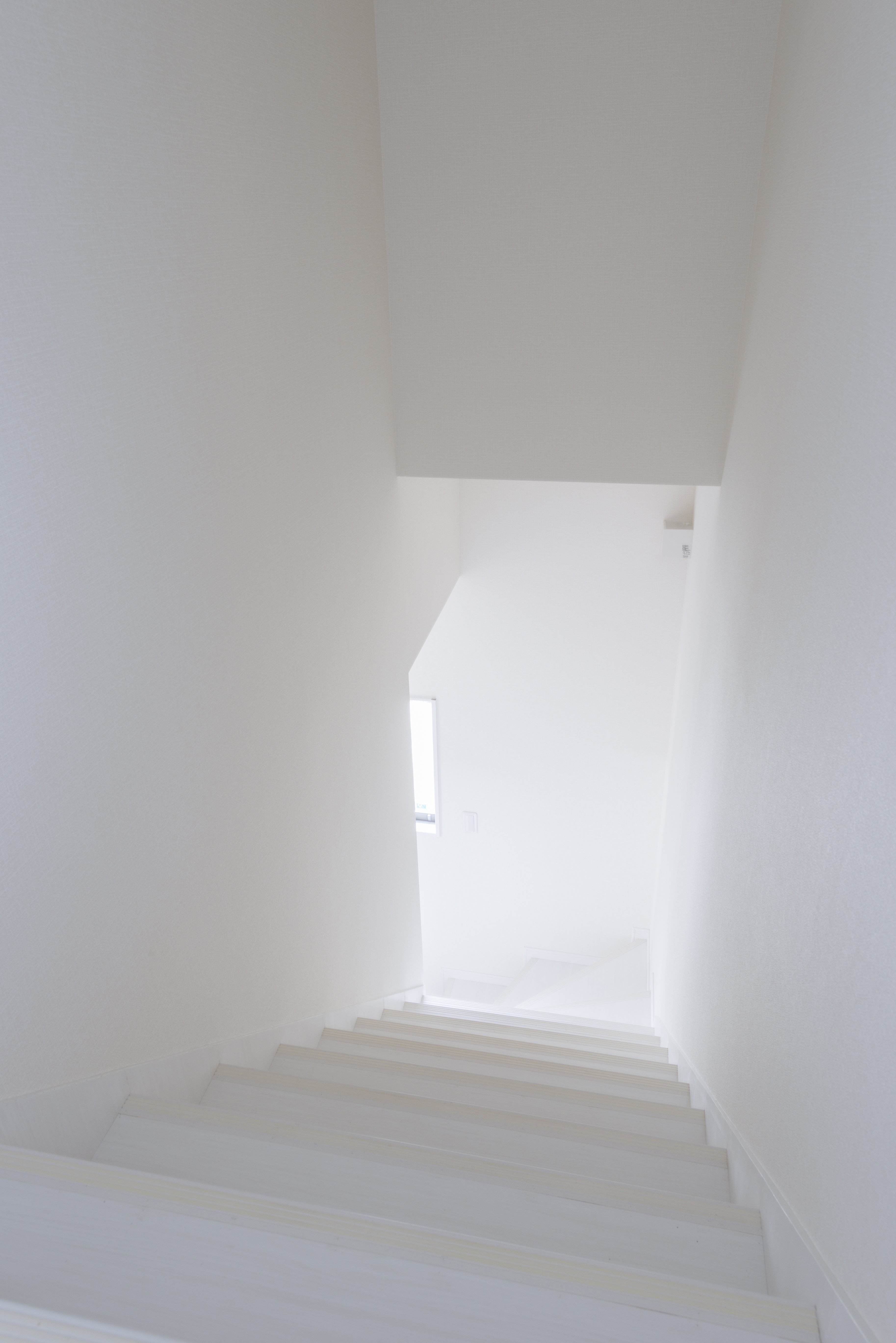 | ロフトにつながる階段下の便利な収納。場所の有効活用でお部屋を広く確保しました。 | 光が入りにくかった階段には既存の階段に白いシートを貼りました。明るい印象に仕上がりました。 |