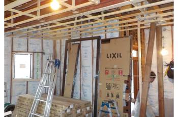 | 気密性の高いサッシと複層ガラスで遮熱・遮音効果のある家が実現しました。 | 床、壁、天井の断熱材を交換。玄関ドアも断熱性の高いドアに交換し、暖かい家の完成。 |