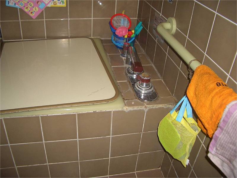 | 施工前のダイニングです。 | 施工前のダイニング。キッチンの向きや窓の高さにお悩みでした。 | タイルの目地が割れてしまっている浴室。寒さもお悩みでした。 |