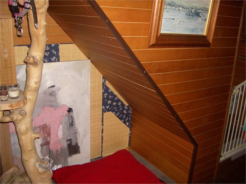 | 施工前の階段下は飼っているワンちゃんのスペース。北側なので少し暗さがあります。 |