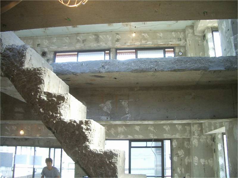 | 解体中の様子。水まわりの位置は大幅に変更です。 | N様邸の南側と北側を分断していたRC造の階段。 | 階段取り壊しの様子です。 |