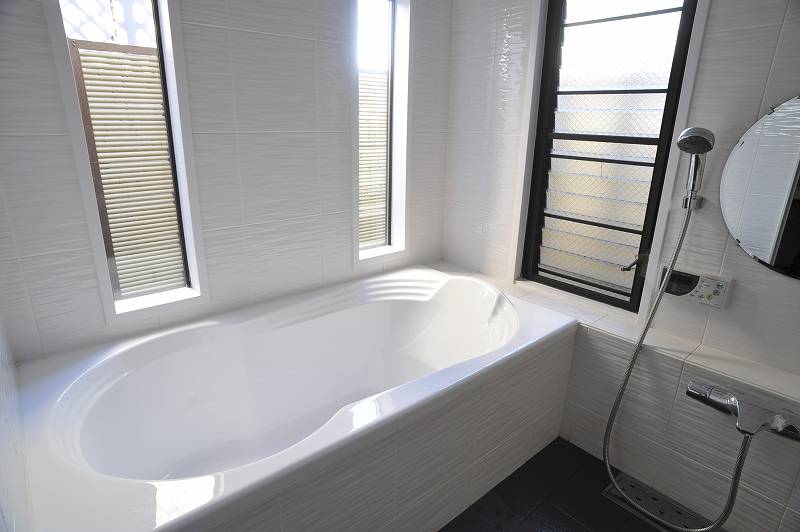 | RCの階段を取り壊し、直行部分を開放感あるオープン階段にしました。デザイン性にも優れた大工さんの会心の作です。 | バスルーム。寒さ対策と使い勝手の良さを考慮しつつおしゃれな水まわりの空間を作りました。窓を小さくし、防寒対策を。東京タワーが望める絶景のバスルームです。 |