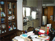 | 居間からトイレへの導線上にキッチンがあり、来客時に不便さを感じていました。玄関外にもう一つトイレがあるものの、靴を履かないと行けませんでした。 | ダイニングキッチンだったので居間から離れており、家事をしている時は孤立感を感じることもあったそうです。また、キッチン前を通らないとトイレに行けないという不便な動線も悩みでした。 | 10畳の和室に夏場でも移動できない掘りごたつがあったため、大人2名と10代のお子様2名では窮屈さを感じていました。 |