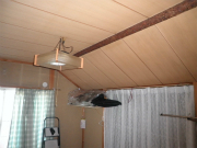 ■屋根裏の「隠れ家」■ 階段を上りきった部分には、カーテンとアクリル板で仕切りを取り付ける予定。 熱は上部に逃げる性質があります。 空間を仕切ることでエアコンの効率がぐっと上がります。 |