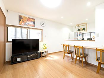 | おしゃれで快適な空間にリフォームしました! | ワンフロアで生活できるお部屋の配置にもこだわり、1階にLDK・寝室・トイレ・お風呂をまとめました。 |