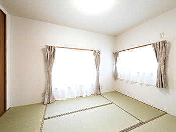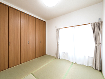 | 2階のゲストルームです。 | 畳の縁を変えて、部屋ごとに優しいアクセントを付けました。 |
