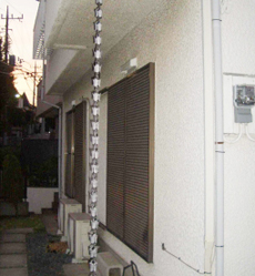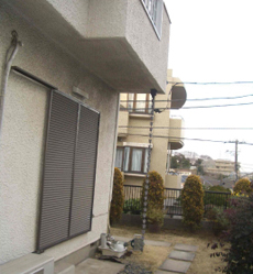 | バルコニーの下のスペースに、約5.5㎡の増築を行います。 | 掃き出しのサッシはシャッター付きのものを選び、雨樋いもやりなおしていきます。 |