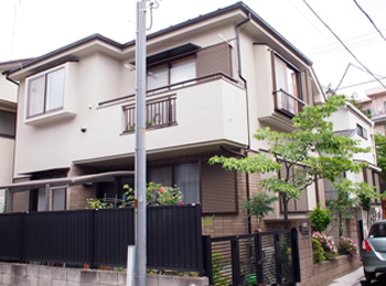現場調査をしたところ、築16年の物件とは思えないほどヒビ割れが起きてなく、状態がよかったので、付帯工事をせずに、外壁と屋根の塗装を行いました。 今回は、外壁はキタセツで通常使用している、シリコン系の塗料を使い、屋根には夏の暑さをしのげるよう「遮熱塗料」の「セラミクリーン」を使いました。 外壁塗装の際、遮熱塗料を使うと、大田区の「リフォーム助成」の対象になります。(※大田区にお住まいの方に限る) |