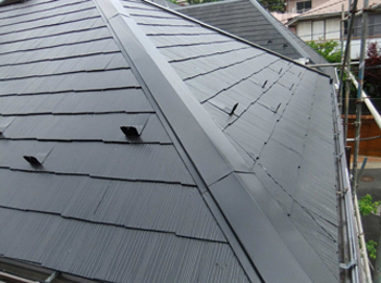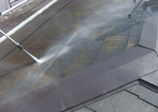 | 施工後です。全体のイメージが明るくなり、建物の防水性も高まりました。 | 目立った屋根の傷みがなかったので、高圧洗浄をしたあとに遮熱塗料を塗りました |
