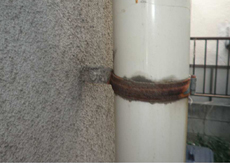 | エアコンの配管のテープのまき直しや、雨どいの留め金も劣化していました。 |