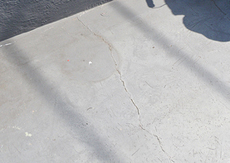 | 外壁に使用した下地材です。 | 屋上の防水が痛み、ヒビが見えます。 | ヒビの部分に防水下地処理をします。 |