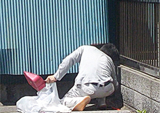 | 配管も外壁の色に合わせて塗装します。 | 近隣の清掃をして終了です。 |