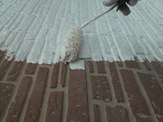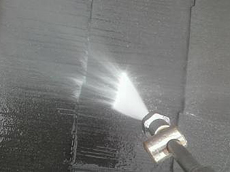 | 屋根にバイオ洗剤を塗布します。 | 屋根に高圧洗浄をします。 | タスペーサー挿入です。 |