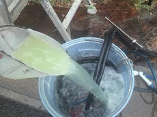 | バイオ洗剤を攪拌します。 | 外壁にバイオ洗剤を塗布します。 | 外壁に高圧洗浄をします。 |