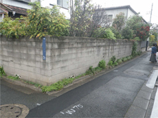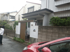 | 築年数が60年と経っていたため、外壁も外構も傷みが目立っていました。 | 外壁工事の施工中の様子。既存の木製の外壁をはがし、下地の処理をしてからサイディングを施工します | 人の背丈ほどの塀が視界を遮っていました。 |