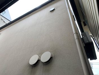 築8年でメンテナンス時期までは少し早めだったのですが、外壁の汚れが目立っていました。特に排気口やベランダ、窓枠などには雨垂れがあり、雨どい周辺も水が溜まったようなシミがあったんです。また、外壁がざらつきのある質感だったので、トゲトゲした感じで危ないなと懸念していました。稽古場に通う子どもたちが触れてケガをされたら困りますからね。