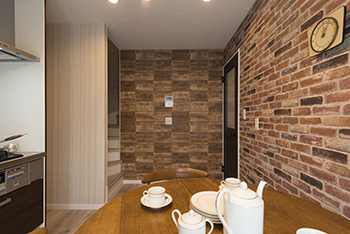 | それで壁紙やドアはビンテージ風でイメージしました。壁紙のクロスや床のクロスは私がイメージしたものを選んで貼っていただきました。 | |