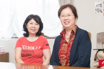 ▲知識も経験も豊富な廣瀬が窓口を担当。 お母様(写真左)と一緒に。 |