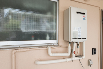 | ▲給湯器の周りの細かな部分もきれいにしました。 | ▲駐車スペースの鉄骨部分や、天井はホワイトで塗装し、アクセントをつけて明るい雰囲気に仕上げました。 |